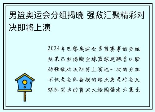文章摘要:随着奥运会篮球赛事的临近,全球的球迷和观众目光都集中在了这场充满热血和激情的比赛上。从赛场上的激烈对抗到媒体直播的全程报道,再到球迷们的全民关注,奥运篮球已经成为了一项影响力巨大的赛事。本文将从多个角度剖析奥运篮球赛场的激战和赛事直播的广泛关注,探讨其中的深远影响以及为什么它能够成为全球观...